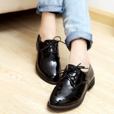 Black patent leather shoes with flat soles or moderate heels, ballet flats, boots in combination with classic dresses, tight jeans, shorts, jackets, cardigans are ideal contenders for the role of casual wear.