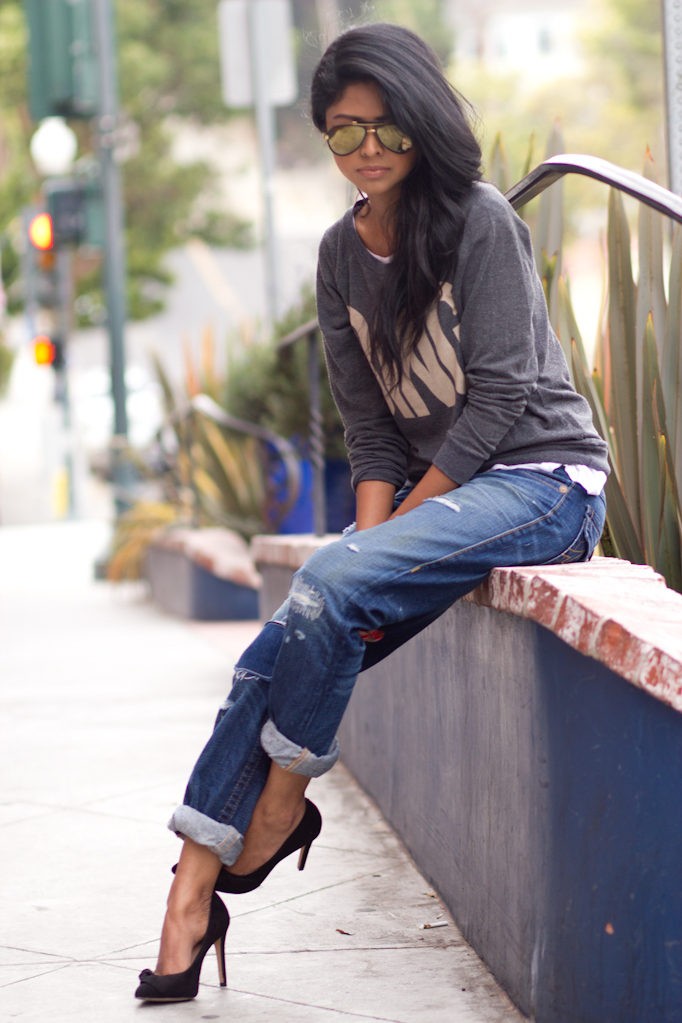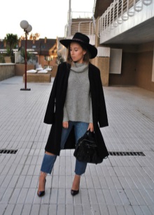 The color of the jeans themselves is also not critical, it can be from blue to dark blue, almost black. With a properly selected combination of top and bottom, black boats will successfully complete the entire image.