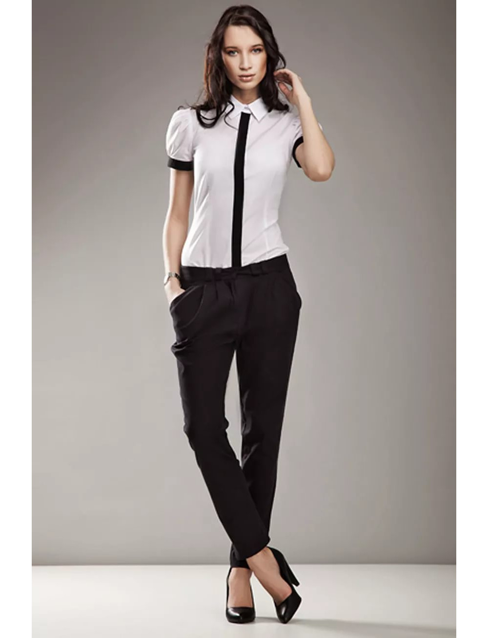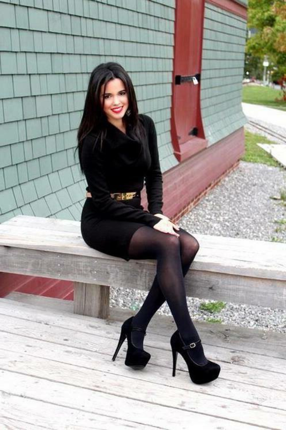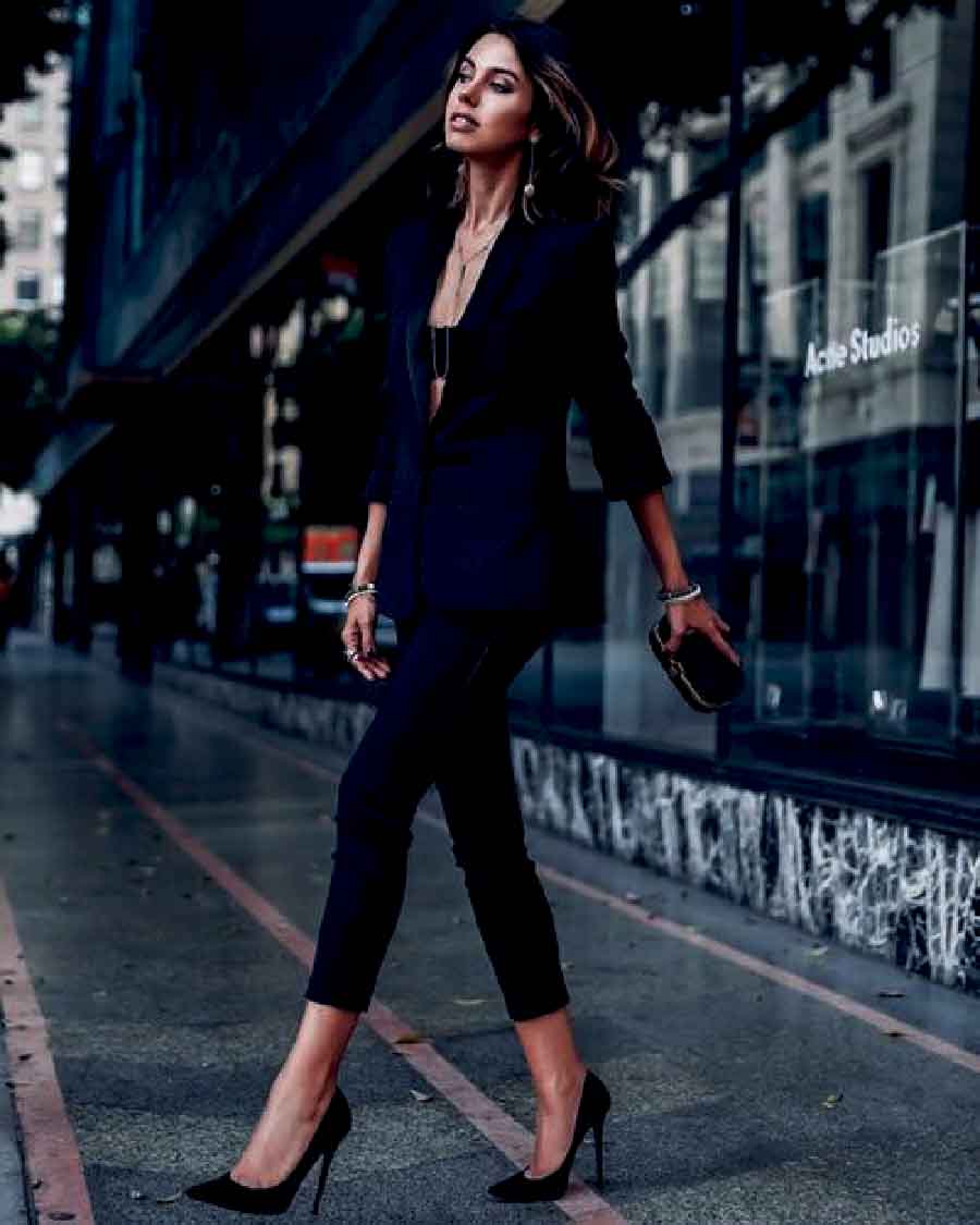 Black high-heeled shoes not only visually stretch, thereby making the figure more slender, but also make it more stately, helping to correct the posture.