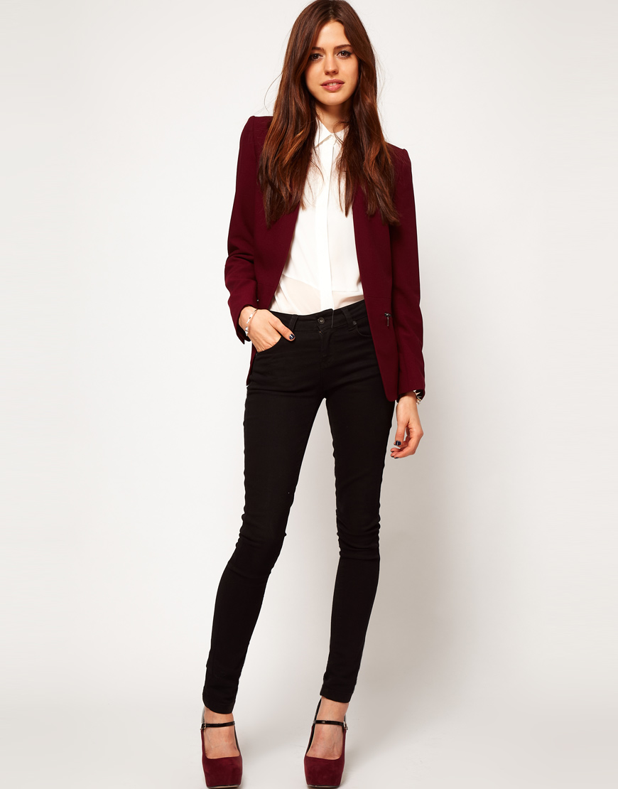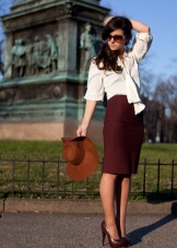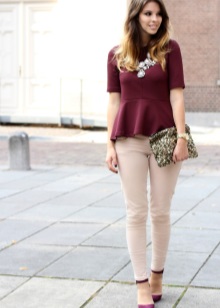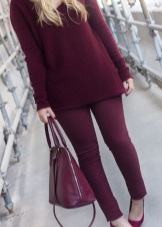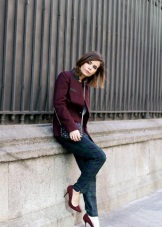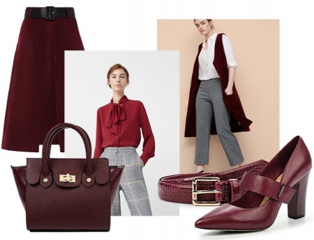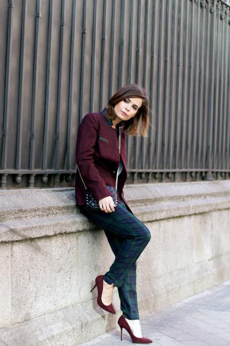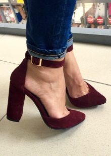 Business and austere style will help create suede Marsala high-heeled shoes in combination with light-colored clothing. Beige trousers, shirts and jackets of various shades in combination with wine-colored shoes will allow you to create discreet and at the same time feminine images.