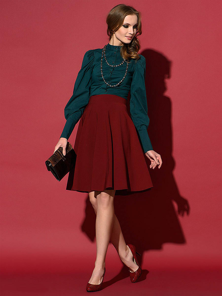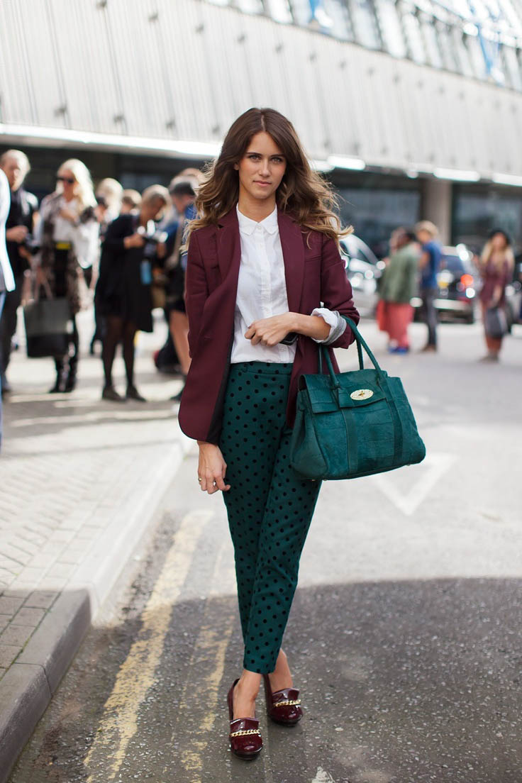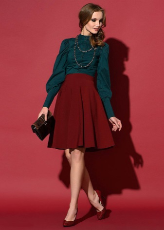 Oddly enough, the marsala wine color goes well with green. Dresses, trousers and blouses, with a rich emerald hue, are in perfect harmony with Marsala suede shoes with durable high heels.