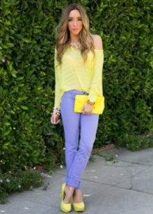 Violet shoes are in harmony with many neutral colors. Shoes of such a deep and dense color look simply fabulous in a duet with a light outfit consisting of delicate trousers and jackets. Purple shoes emphasize the femininity and romance of the image in a tandem with puffy skirts, pencil models, as well as short and long dresses of various colors.