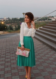 This season's incredibly fashionable and vibrant are combinations of calm green with blue, blue and sunny yellow. No less stylish and harmoniously green shoes look with dresses of brown, black or any pastel shade. Clothes and shoes should not blend with each other (the tone should be different), so green shoes are best combined with dresses or sweaters emerald, mint or light green.