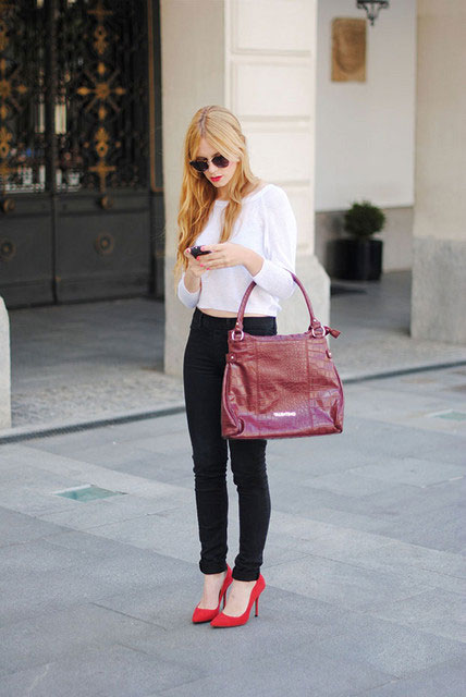 This season's popular red shoes in combination with clothes of orange, pink and fuchsia. Such bright and rich outfits are perfect for the hot summer season. The classic combination of red and rough black, white, blue and gray will create a contrasting and eye-catching image. Such bold and feminine shoes will fit into a stylish casual or elegant evening dress.