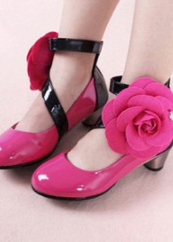 As for models for special occasionsFor example, a New Year holiday or graduation in the fourth grade, here you can make a small exception and buy a daughter one pair of shoes on a higher heel - let her briefly present herself as an adult. Such products usually have a beautiful decor, often made in pink or silver color.