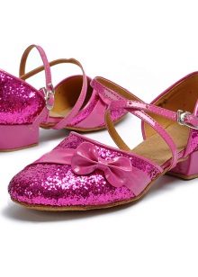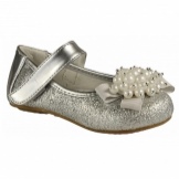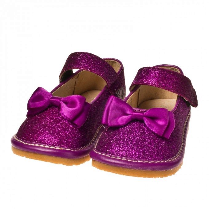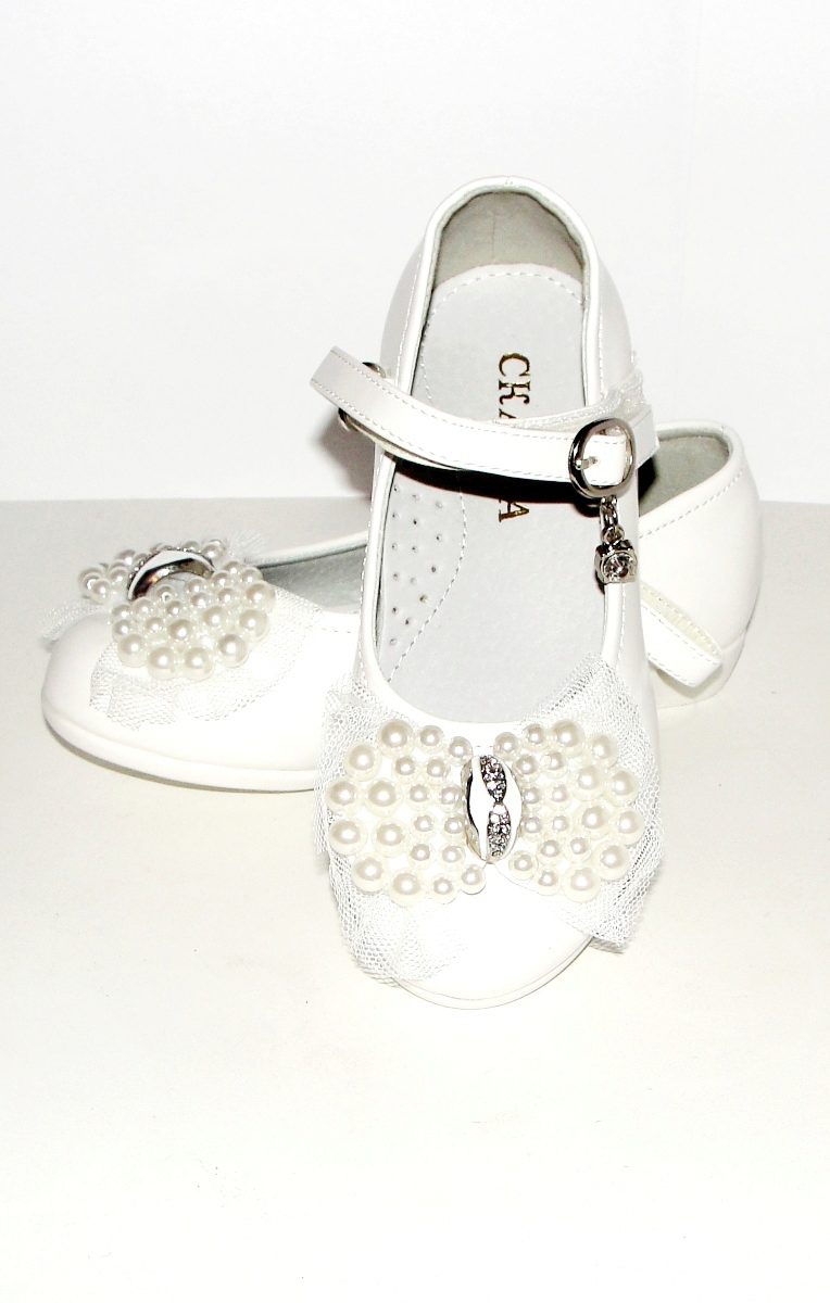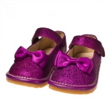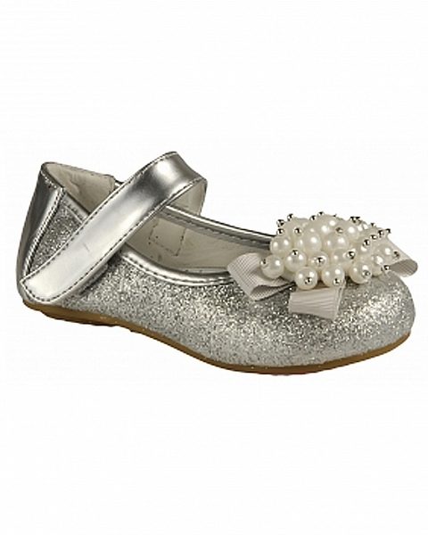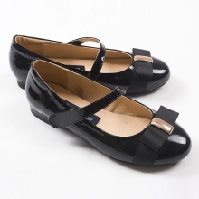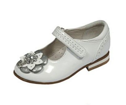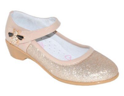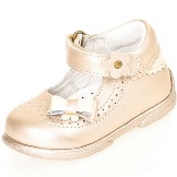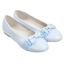 Festive version of shoes for girls from patent leather will be the favorite shoes of a young fashionista. The effective two-layer textile bow with a metallic finish gives elegance, rich color and gloss of patent leather attracts attention. A comfortable small and wide heel up to 1cm and a stiff heel will give a comfortable fit to the leg, an additional fixation of the leg is a jumper in the form of a buckle with a clasp. These shoes are suitable for girls from 5 to 8 years.