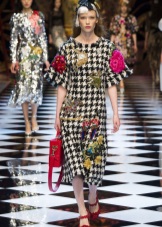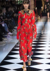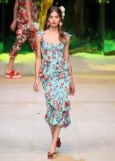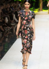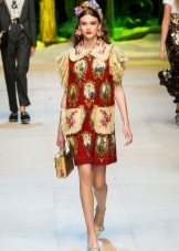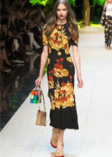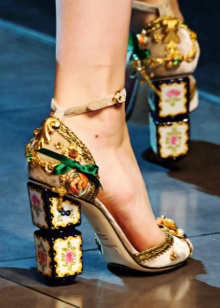 Red, green and purple velvet shoes with thick golden heels are truly a royal choice for a luxurious evening dress. Cute short dresses with bright and original patterns and prints look very impressive with Dolce & Gabbana models on a small embossed heel in the shape of a cube and a thin comfortable side strap.