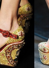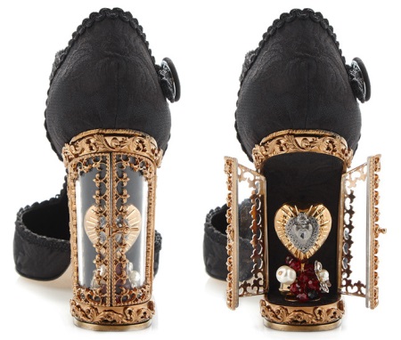The most popular and famous women won Dolce & Gabbana shoes with an opening heel. Such classic models keep a curious secret: at the base of a stable heel there are small doors, behind which lies an interesting detail - the Holy Heart, known among Catholics. Also, designers Dolce & Gabbana spoil fashionistas with original and stylish velvet shoes with comfortable buckles and metal inserts on a thick golden heel.