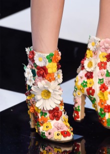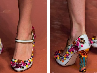 Designers pay great attention to heels and decorate them with large stones, embossed ornaments and flowers.