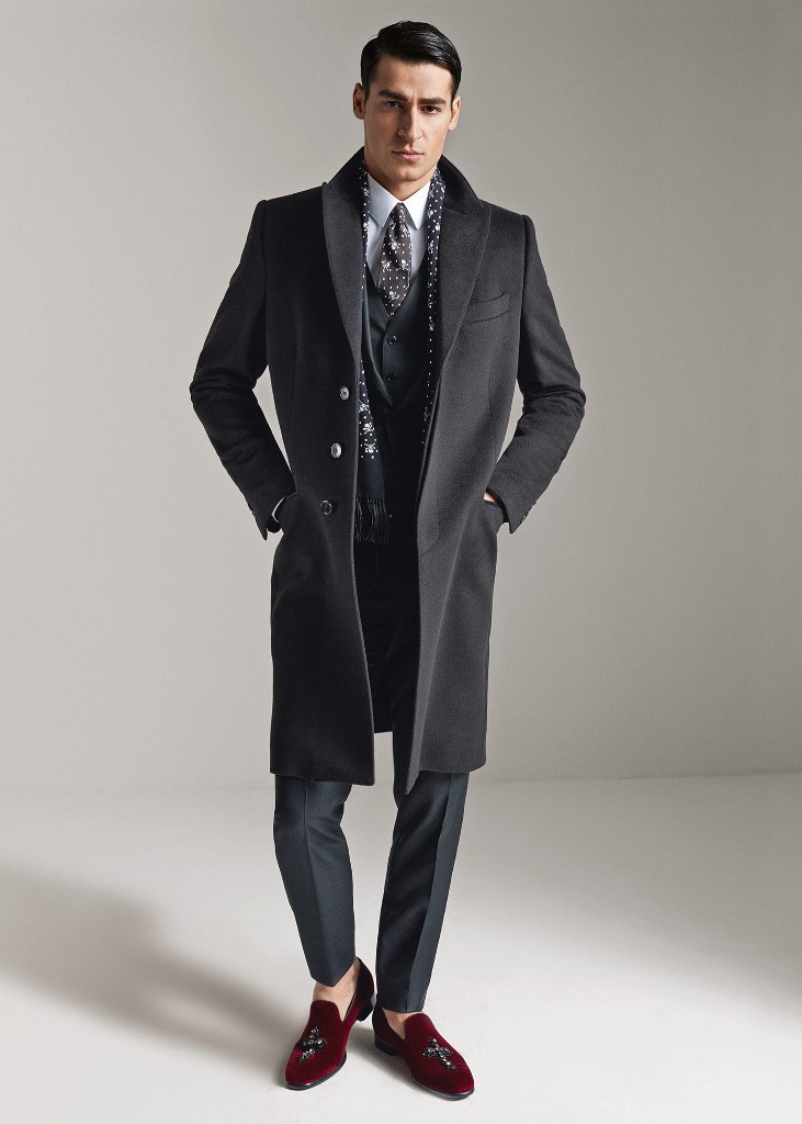 Classic men's models of the Italian brand with a lacing or without it look harmoniously in tandem with monophonic coats of various lengths, complemented by contrasting scarves.