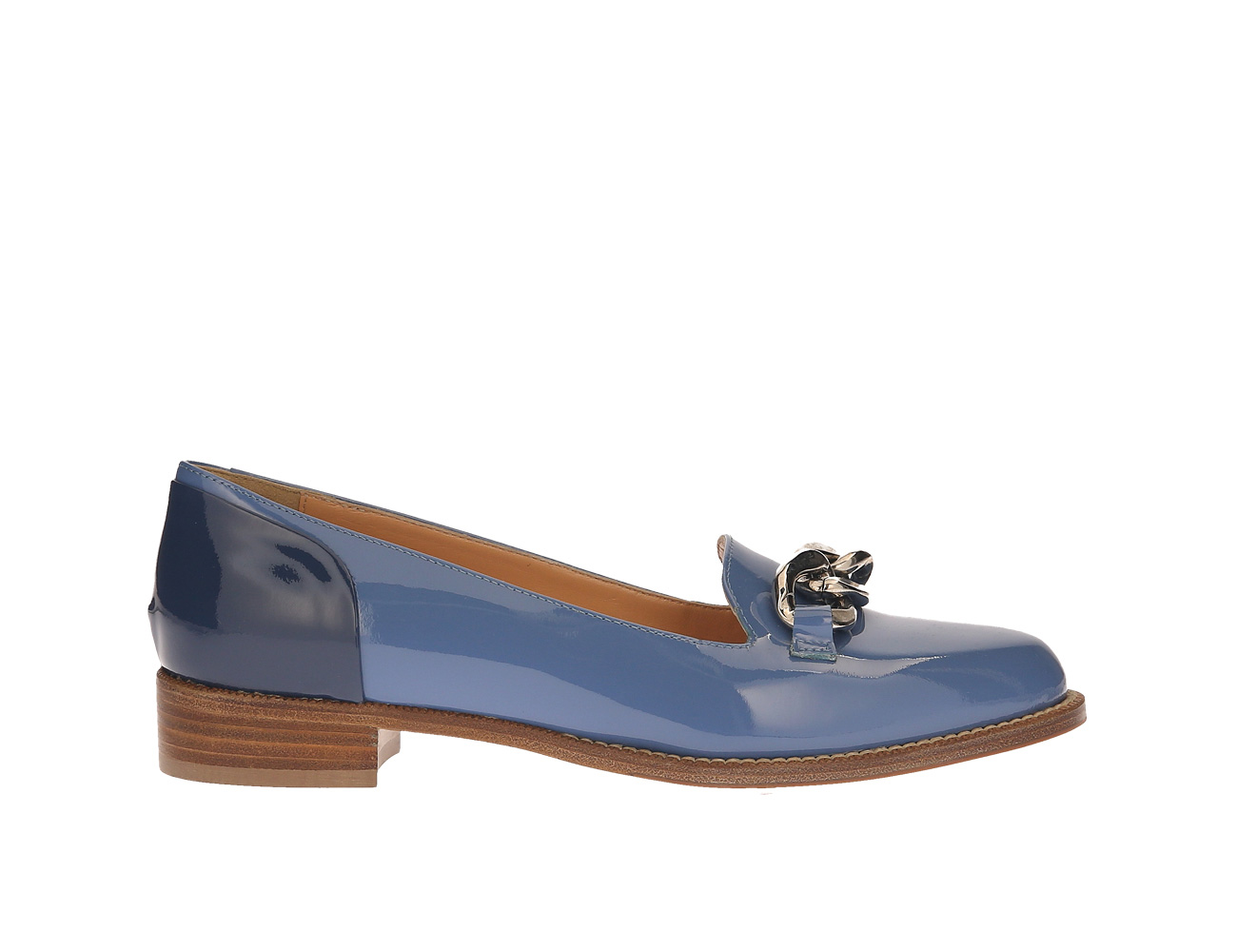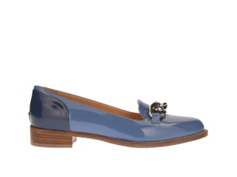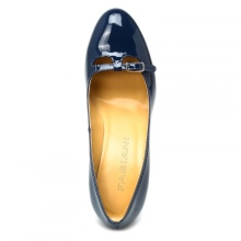 The next no less relevant model of one of the latest collections of Giovanni Fabiani is made in a rich dark blue color. The style itself is a type of boat shoes with a rounded closed toe and a steady heel. Lacquered genuine leather, which is used in this model, is one of the trend new products of this year - it looks very impressive, despite the simplicity of style.