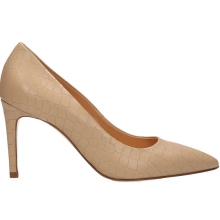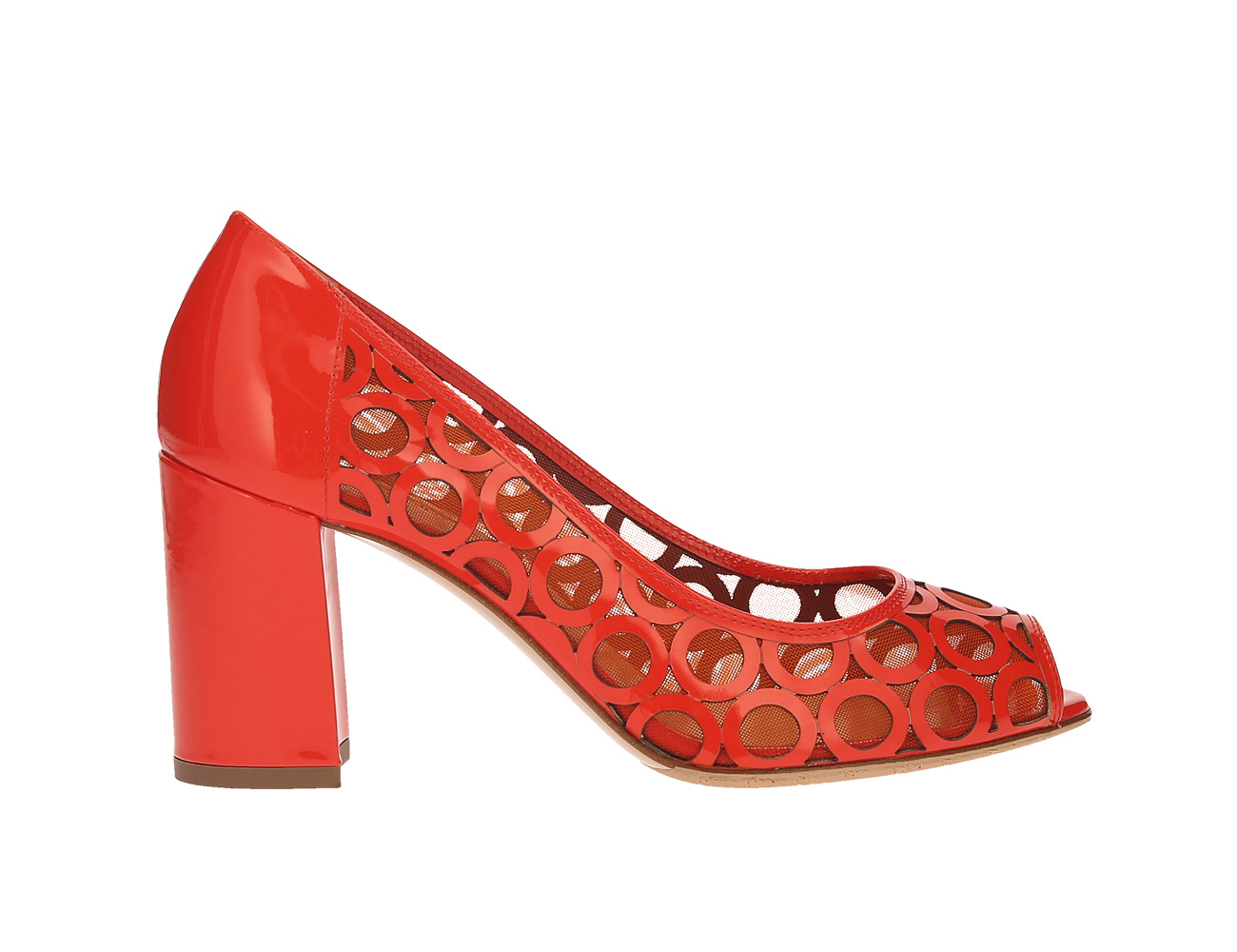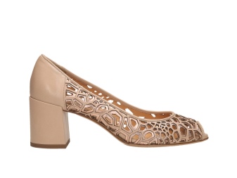 Lamination in the form of a small symmetric pattern applied to the base of the heel of shoes is used as the main decorative element. The toe of this model is decorated with a very sophisticated thin strap with a small buckle adjustable. These shoes are suitable as an accessory to a stylish office or business image, as well as perfectly emphasize the everyday image of its owner.