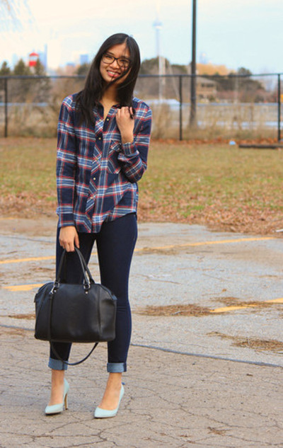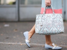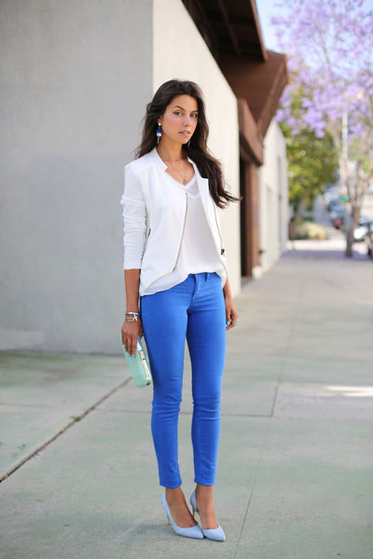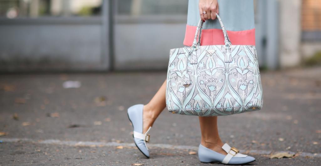 If you do not have a handbag to match the blue shoes, it is better to pick up a beige handbag for them.