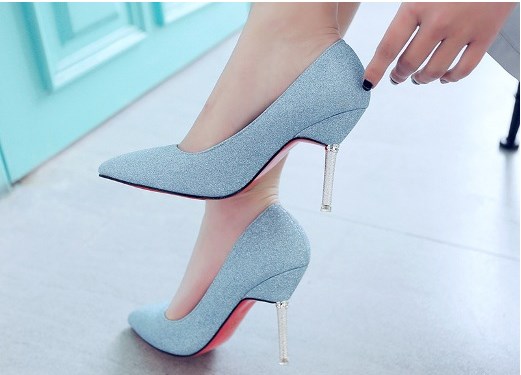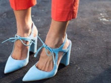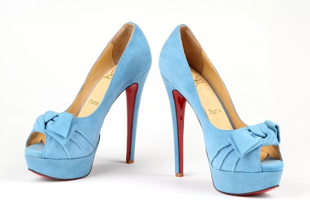 To the office style fit beautiful shoes with low heels or rectangular heels of gray-blue color. You can even pick up shoes with blue soles. For work it is better to choose discreet colors and a classic design.