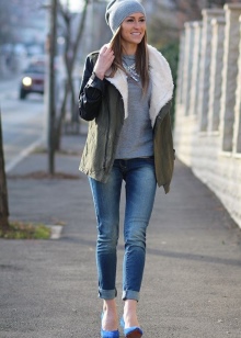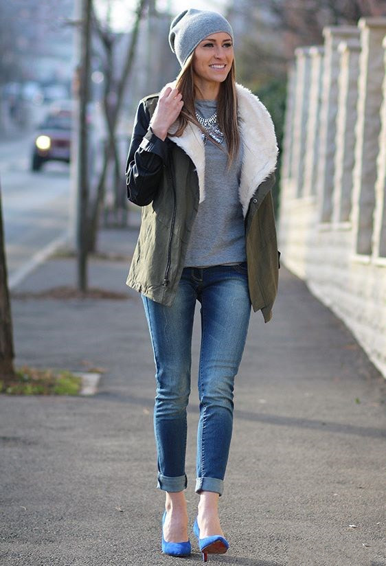 Blue shoes with a beige or gray color in the image are well suited for everyday wear. For example, jeans, green sweater and blue shoes. The beige coat will complete the casual bow. Gray mini skirt looks good with a blue jacket and blue shoes. Bag in contrast to the selected ensembles will be the final element.