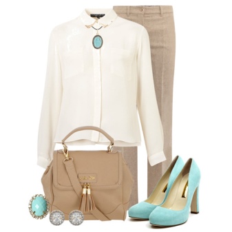 Smoky-colored shoes with a black pencil skirt and a white blouse can be worn in the office. Complement the image of the bag in the color of the shoe. This combination looks quite formal, but much will depend on the shade of your shoes.