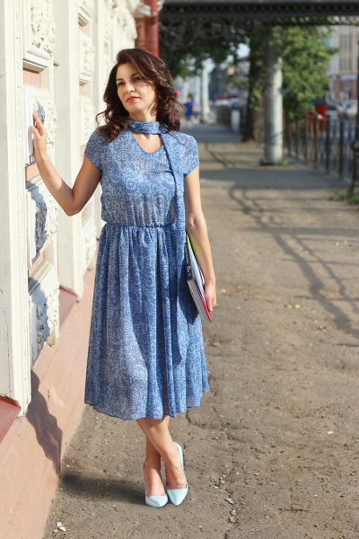 Always choose blue shoes and a dress. It is better if its colors are as follows: purple, gray, white, blue.