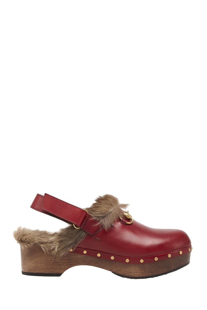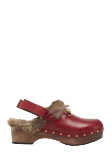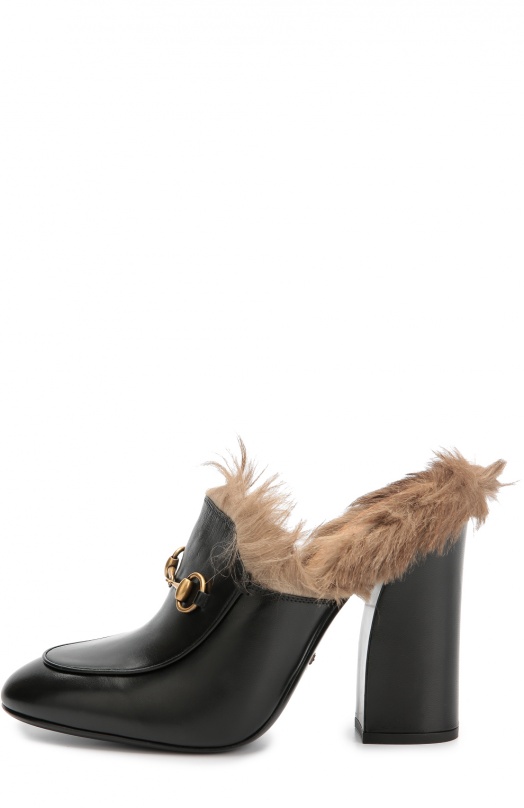 For lovers of the platform, the company offers a line that combines the platform and a small wide heel.The shoes are made in the style of rock, have an open heel and are additionally decorated with a fur trim on top of the boat in the front. The sole of the products contrasts with the basic tone, and on the sides and in the front, the designers provided for metal rhinestones. For greater stability, the sole has a rubber layer.