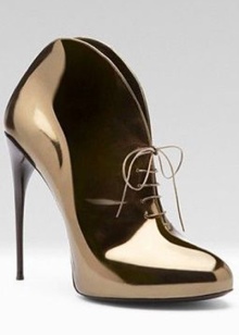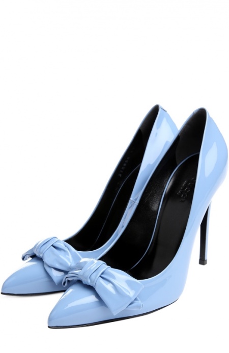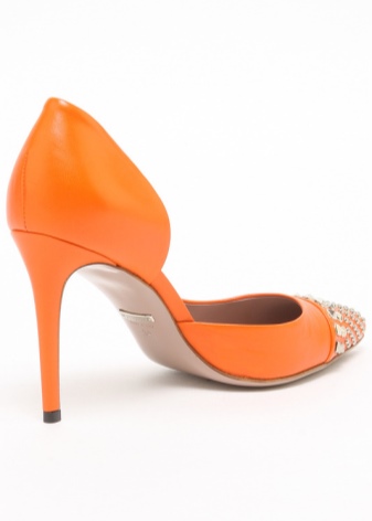 Stiletto heels have a pointed toe and are made of matte and patent leather. A comfortable boat is often decorated in front with metal buckles, decorative spikes, fringe, rings, contrasting inserts and colors.