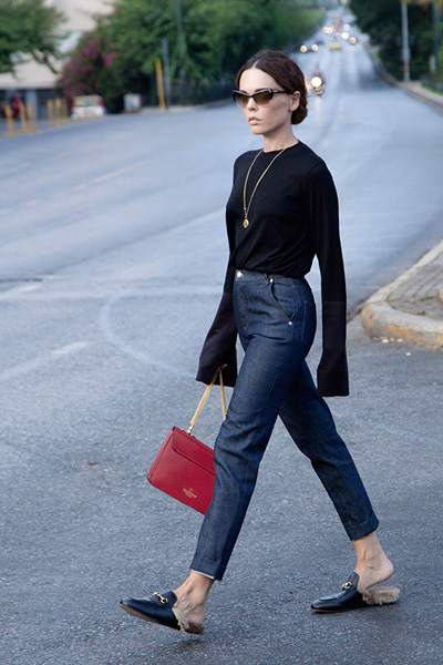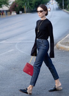 The shoes of the famous brand are universal and fit to different bows. In any case, it is necessary to approach the creation of the image responsibly, in order not to overplay the bow. Such shoes in itself are quite bright and do not need unnecessary decoration.