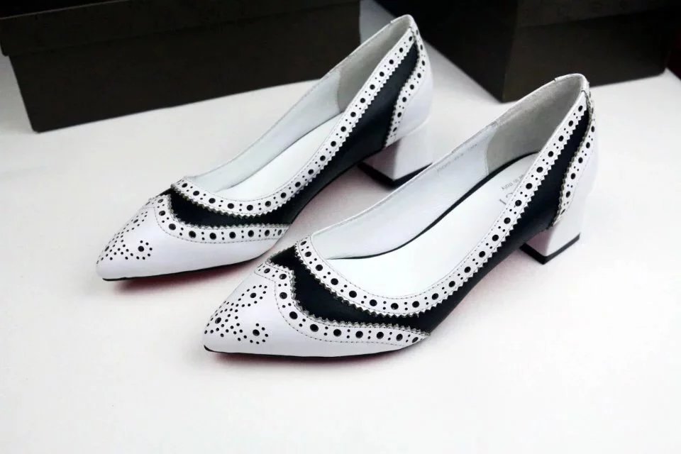 For girls who prefer such shoes, the brand offers models with square heels. Often combined boats are decorated with perforations. For more emphasis, the perforated detail is superimposed on a contrasting background.
