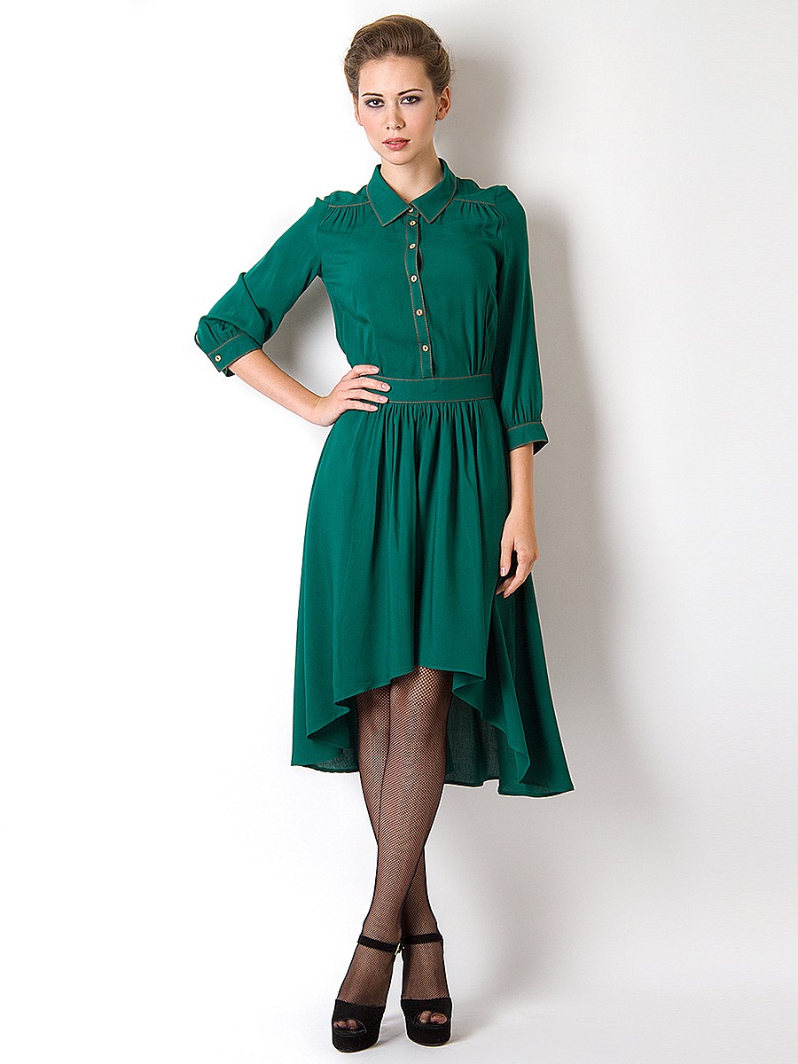 By the way, blondes are recommended light shades of green (mint, lime color, jasmine green). Owners of dark hair are recommended rich shades, among which is advantageously allocated emerald. Ginger women of fashion can choose dresses with a greenish-brown shade.