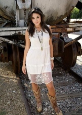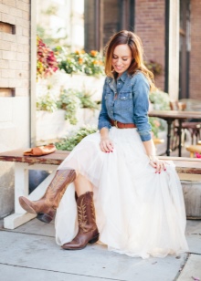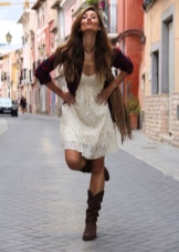 - Exactly, every girl and woman in the wardrobe will find suitable things that can be worn with shoes, boots or Cossack boots, as these can be checked shirts, suede jackets, floral print blouses, fur vests, fringed skirts and ruffles, dresses with lace inserts.
