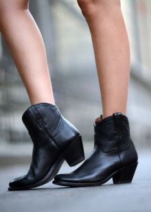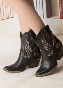- Perfectly selected glamorous image - these are semi-boots Cossacks and jeans (jeans, shorts, shirts, vests) or leather products (pants, shorts, jackets).