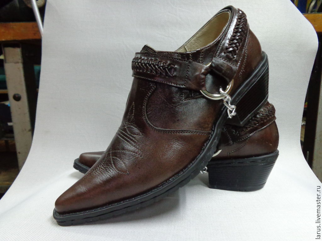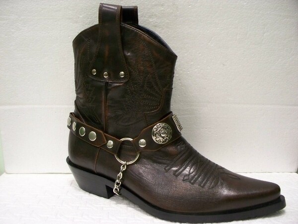 - Biker option The “Cossacks” are distinguished by the fact that his ankle is short, and a chain is suspended under his heel.