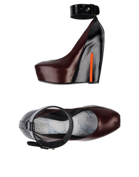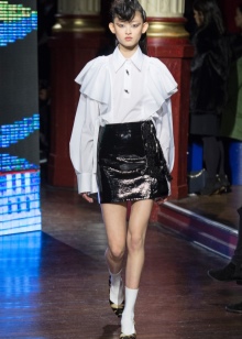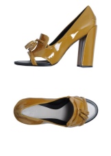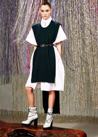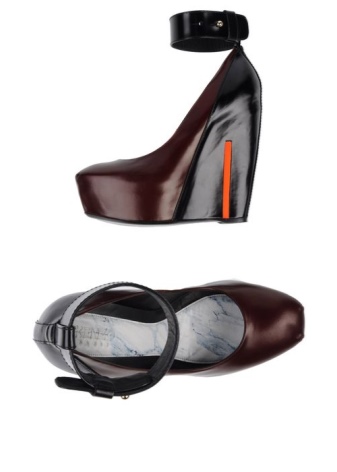 Shoes on a thick platform. Of course, the fashionable home with the name of world fame simply can not do without the most powerful trend of this spring. Bulky, at first glance, but very stable shoes are made of polished leather. They have a closed heel and flirty strap that gently clasps the leg and fixes its position. A rounded toe, a massive platform of unusual shape and a large buckle create a practical image of a modern lady.