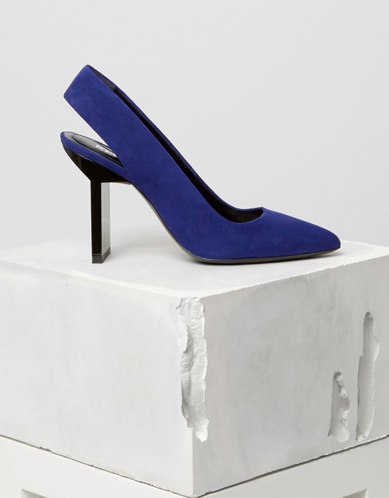 Several of the brightest models will help you figure out what to look for when buying. Statement Slingback Pumps are gorgeous evening shoes with a pointed toe and an open heel of deep blue. Equipped with a fashionable and stable mirror rectangular heel. They are made of natural smooth suede.