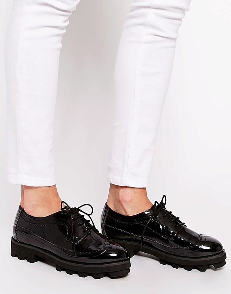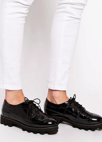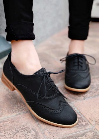 Another type of classic women's shoes are oxfords and broggies. Oxfords came into women's fashion at the beginning of the 20th century from men's fashion. These are closed shoes like men, with a narrow nose, low and flat heels, rigid soles and lace-ups.