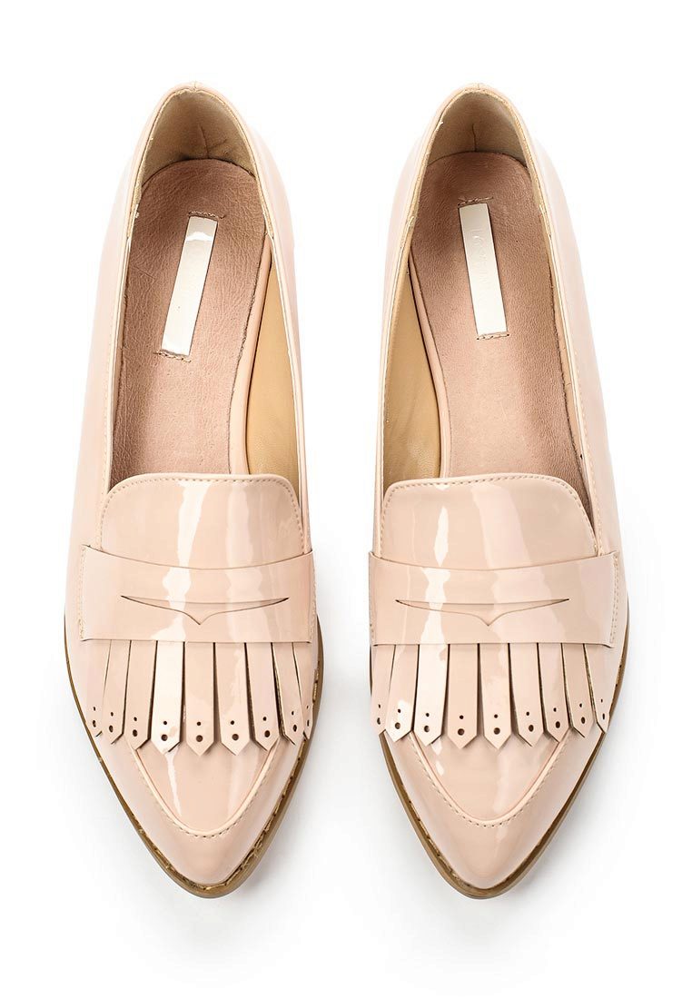 Loafers are closed shoes without fasteners with a clear "tongue" on a thick sole with a low and wide (flat) heel. As the decor can be metal inserts, strips on the tongue, fringe trim.