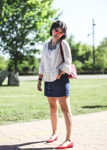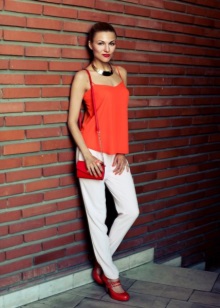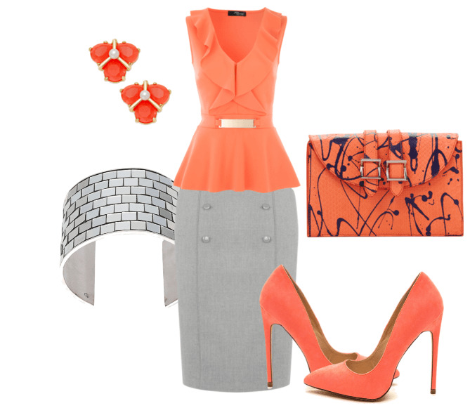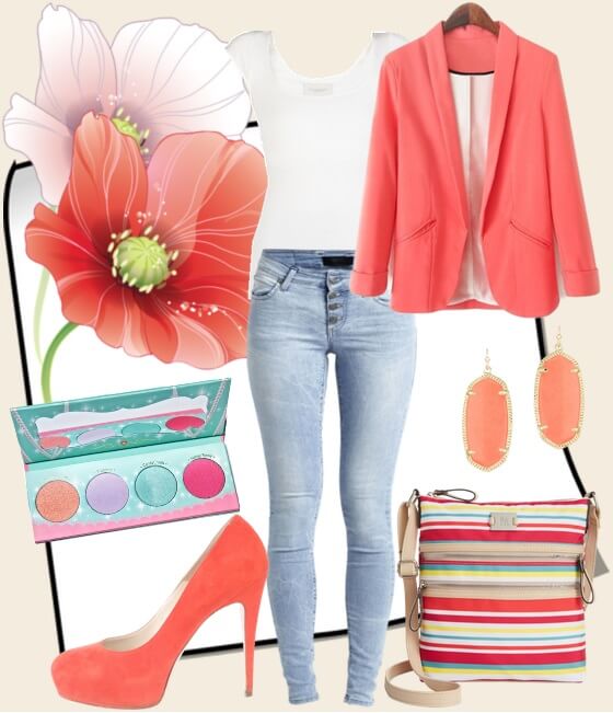 - Black pants or jeans with a light or white top will create a wonderful casual look with coral-colored shoes. Also, a short jacket of orange, peach or beige color will perfectly fit into this image.