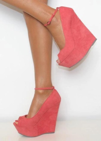 - Wedge-heeled shoes are an absolutely summer version of coral shoes, equally suitable for shopping and visiting the beach.