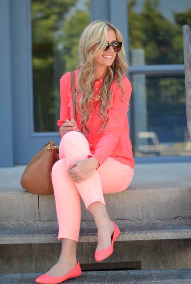 - An outfit of yellow or light green in combination with coral sandals or pumps is a perfect look for summertime.