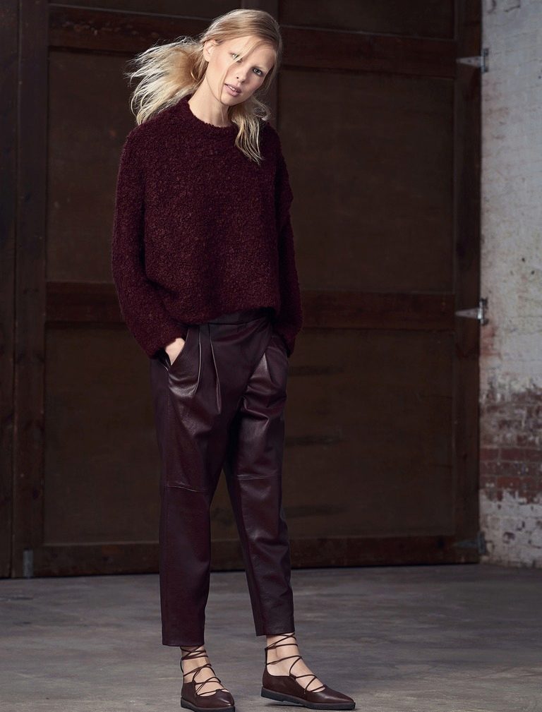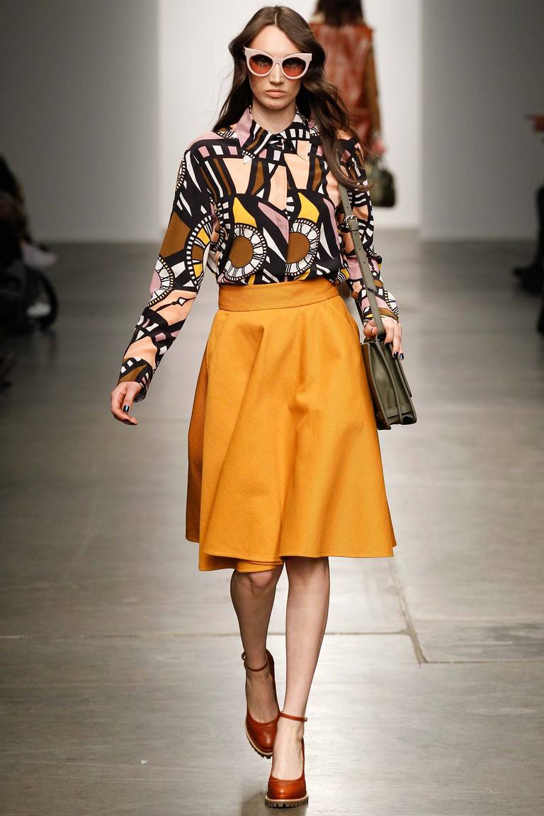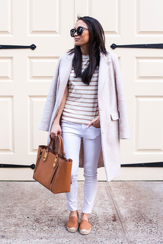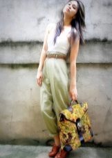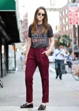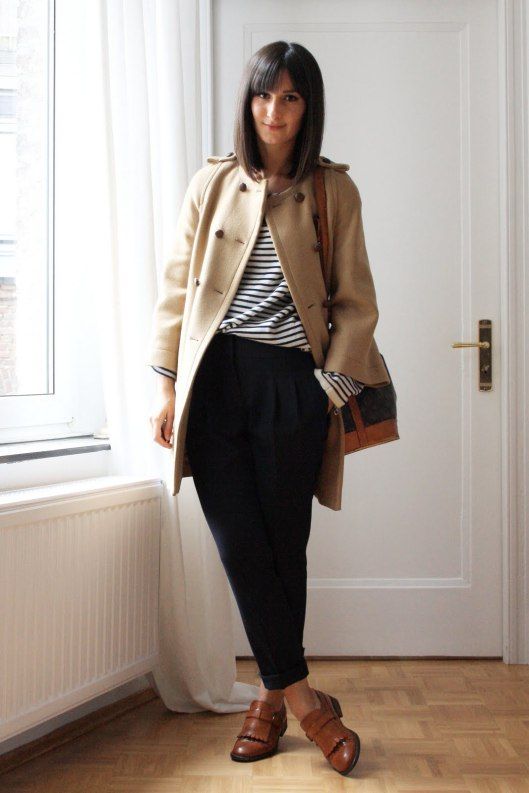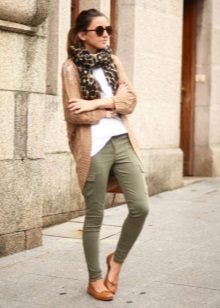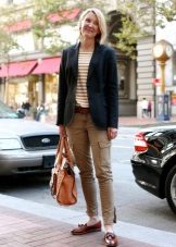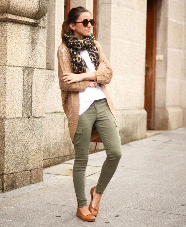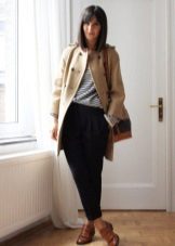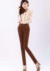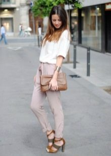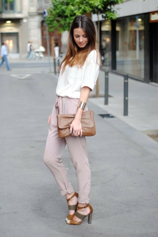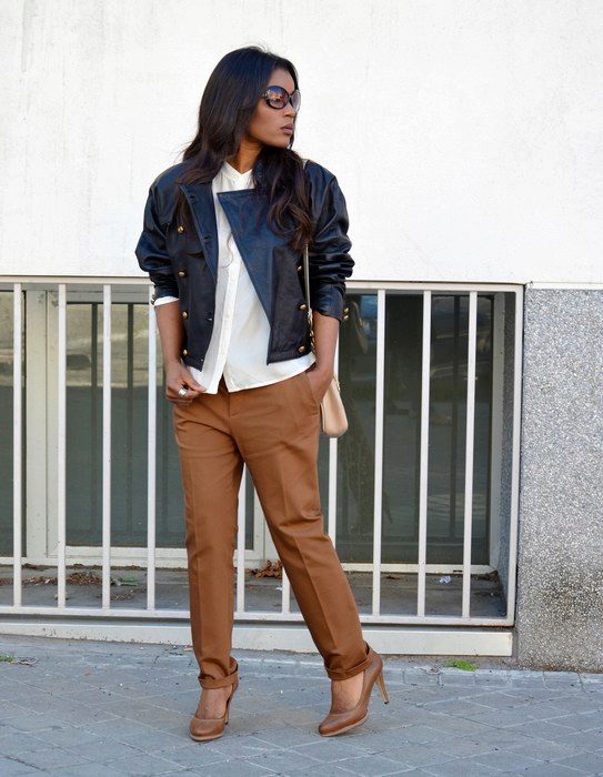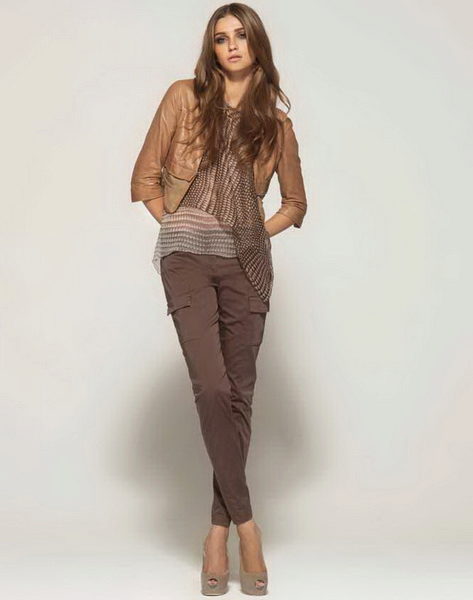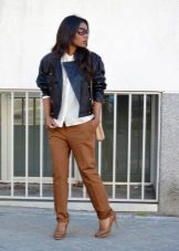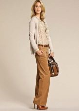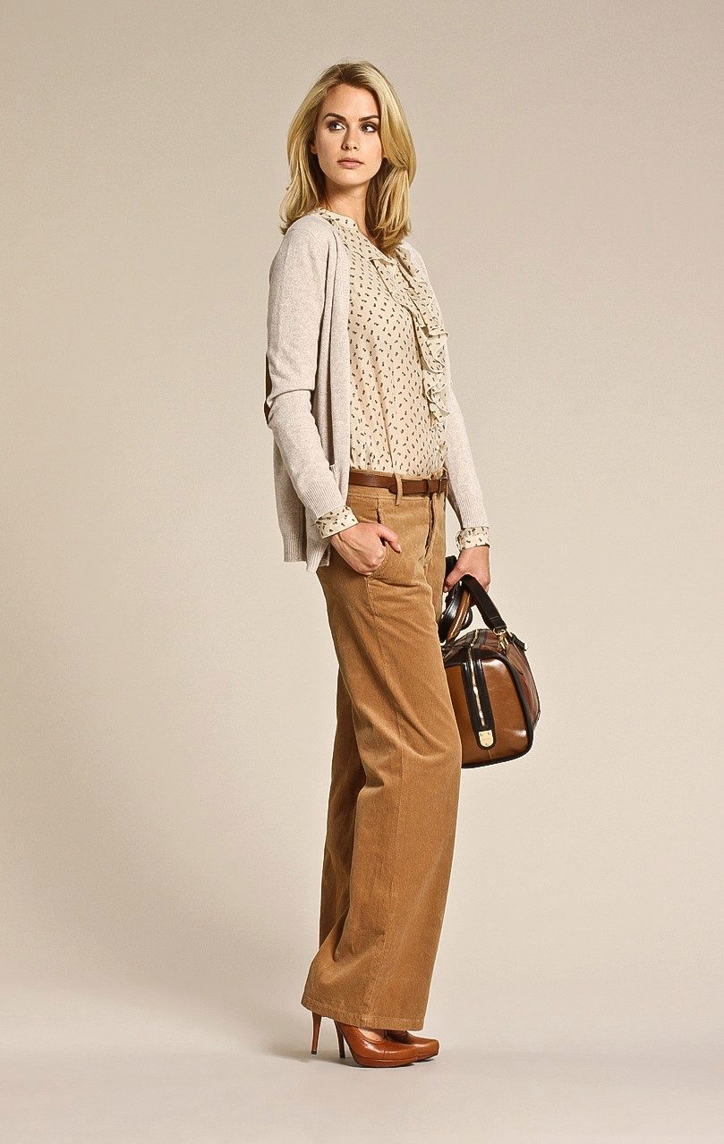 - With trousers of warm (beige-orange) shades.