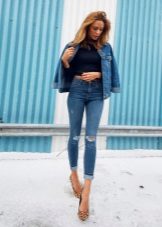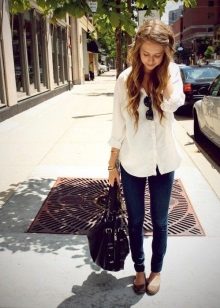 A well-chosen combination of classic brown pumps and casual wear will look appropriate, both at work and in the club. Such shoes emphasize fragile legs and visually lengthen them.