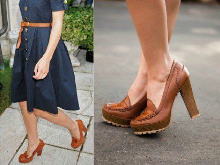 Most often, the platform is hidden, that is, sheathed with a cloth or other material from which the shoes are made. Can be both with closed noses, and with open. The shade is chosen in accordance with the skin color so that it visually lengthens the legs. The heel is usually high, often thin.