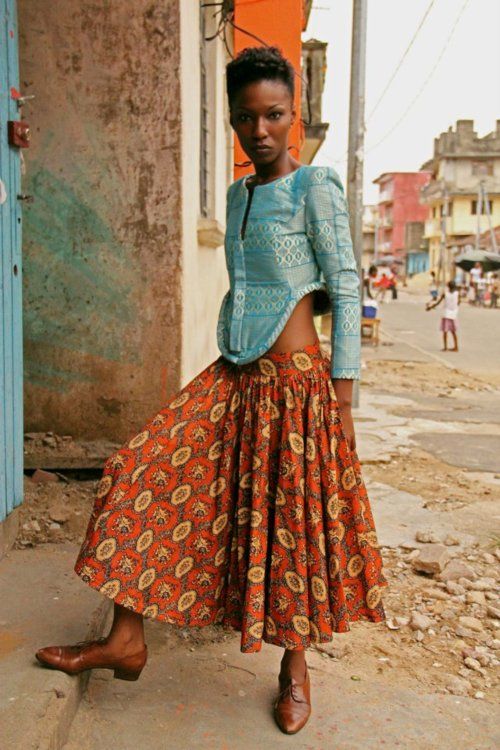 - With bright, colorful dresses and skirts.