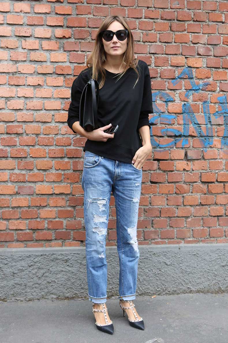These shoes are perfect for black leather pants. They can wear a bright blouse, a shirt with a catchy floral pattern, a T-shirt with a beautiful appliqué or a funny inscription. The image will be very dynamic.