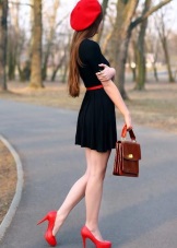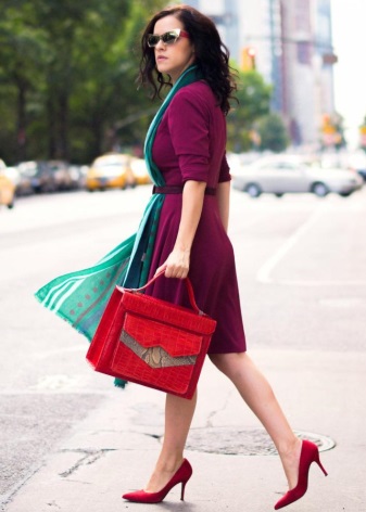 Such footwear is independent in itself, it does not demand additions. And it is not necessary to combine such shoes with a bag. Moreover, a red bag will overload the image, break the harmony and give the image a defiant look. The maximum that is allowed, if the woman really likes the scarlet hue, is a small ornament on the bag, which is combined in hue with shoes.