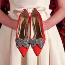 Special attention should be paid to red wedding shoes. Red wedding shoes you can afford, if the dress provided for the same shade details - belt, flowers or lace. Here it is necessary to adhere to the following principle: the brighter, the better. The famous red sole will also be very useful if bright shoes seem too bold to you.