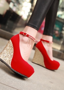 The popularity of red wedge shoes is easy to explain, because it looks very stylish, and it is much more convenient to move around on a stable platform than on thin heels. Shoes of this type are not suitable for the office at all, this is especially true for models with open fingers.