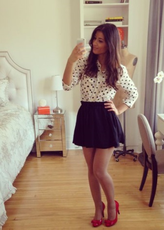 - When choosing shoes as bright and noticeable as red shoes, a girl should remember that a high heel in combination with an overly short skirt is an image of a vulgar woman and certainly will not beautify a young lady.