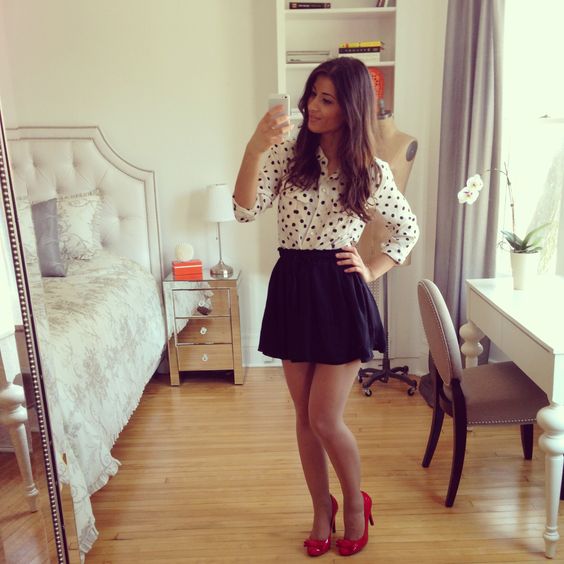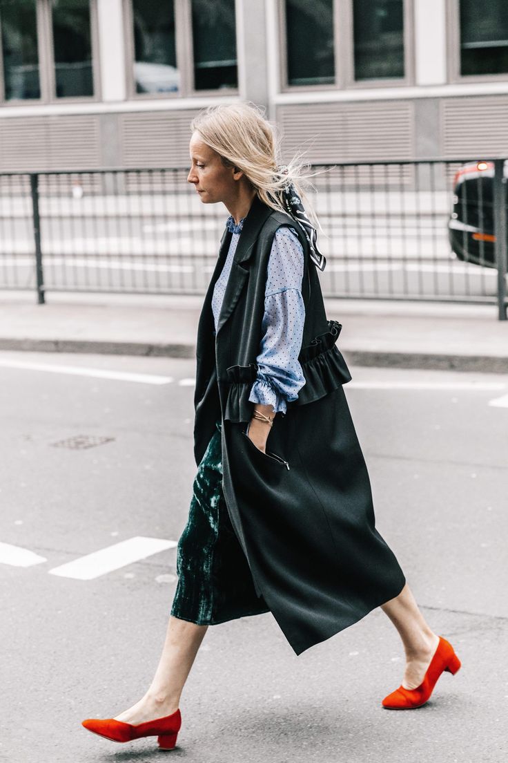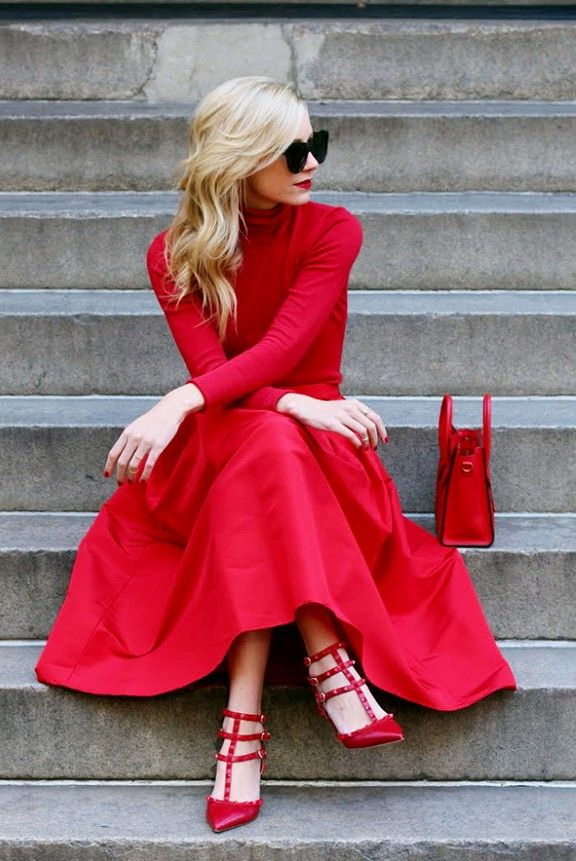 - Red shoes should be combined with dresses and midi skirts.