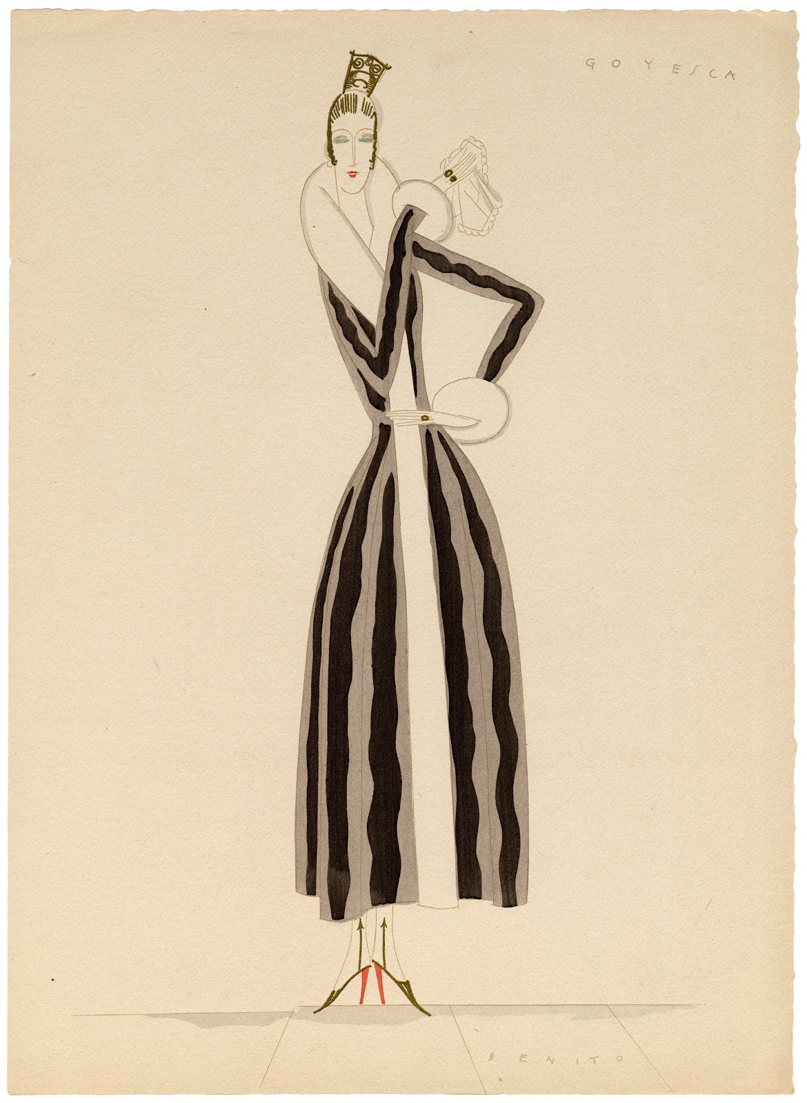 Only in the early twentieth century, the famous illustrator Edouard Benito began to depict red shoes in his illustrations. Here the shade of red was less domineering, and more feminine - flirty and playful.