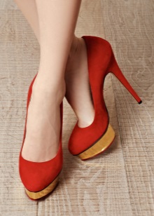 Any suede shoes are quite capricious and demanding to care. When buying red shoes from such a vulnerable material, you should additionally purchase a special protective spray and a brush.