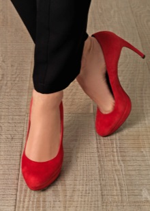 Feeling like a fatal and confident woman will help not only the right clothes, but also the right shoes. Sexy red suede shoes perfectly emphasize the extravagance and elegance of the image.