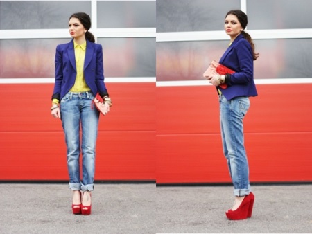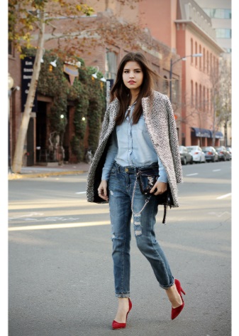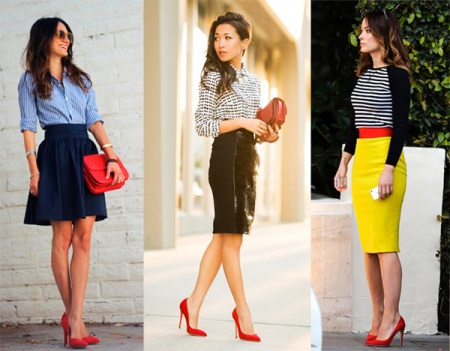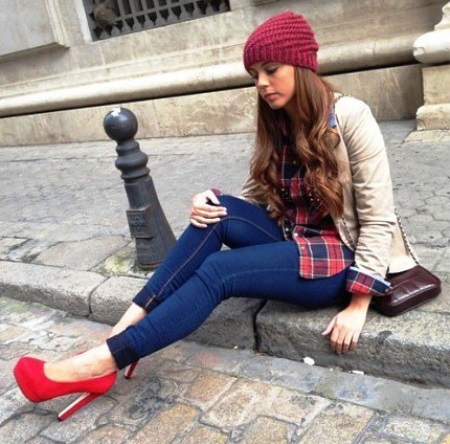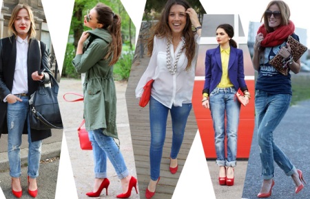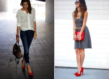 These shoes can be combined with clothing in everyday and urban style. With the right selection of dresses and elegant accessories, you can create a bright festive image. The business style is perfectly emphasized by red shoes on a low thin heel.